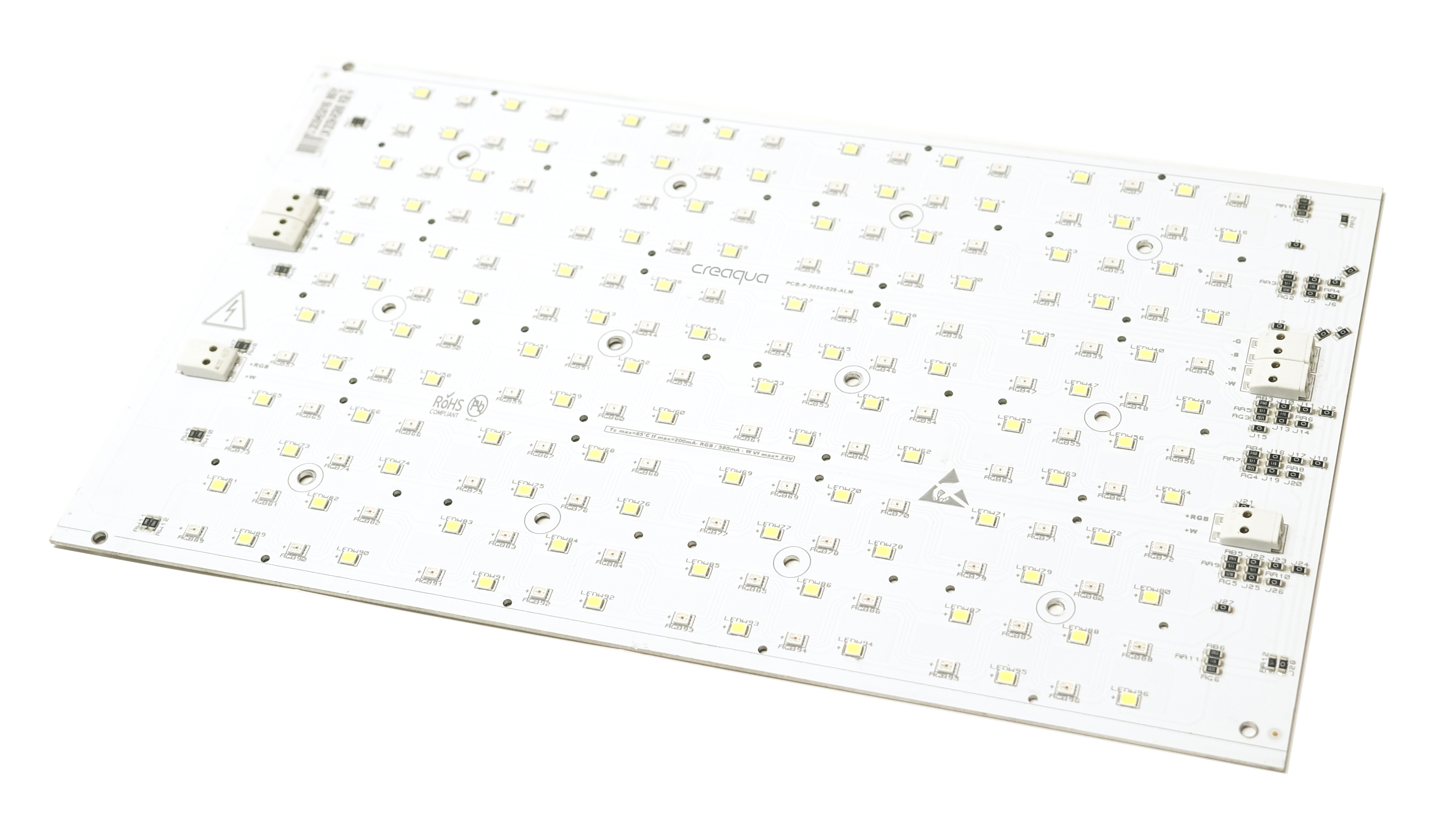 we developed an optimized LED arrangement that maximizes usable light output. At this stage, PCB quality was selected with both performance